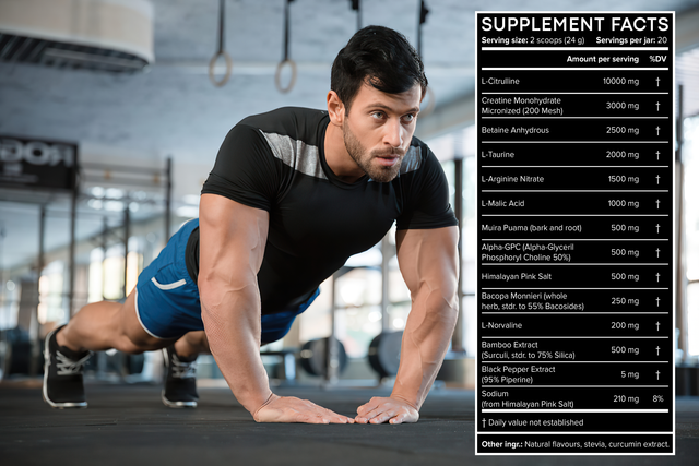 Alpha GPC is a natural choline molecule that is present in your brain and is primarily attributed to enhanced cognition. It is an excellent component for increasing cognitive capacity and focus. It is an essential component for a serious pre-workout and will help not only your brain health but also your physical wellness.