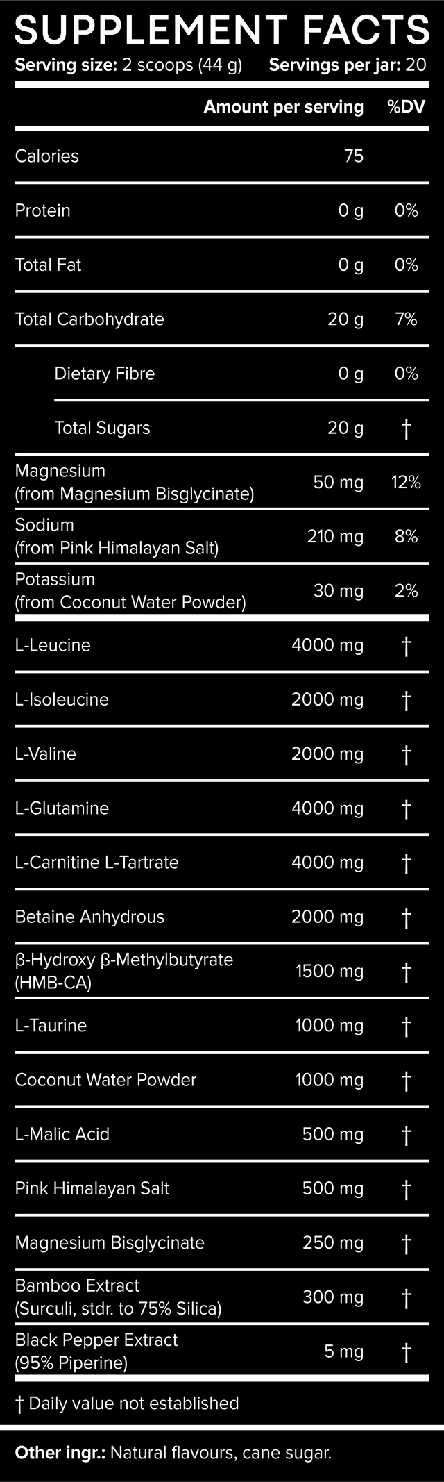Taurine is a great amino acids when it comes to enhance energy and muscle strength. Papers have shown that muscular strength and endurance plummets when taurine levels drops, because it promotes hypertrophy by drawing more water into your cells, and that's why we added taurine in our popular LIMITLESS pre-workout, but it's critical to replenish these levels as soon as you finish your workout session too, in order to refill the muscle tissues.
