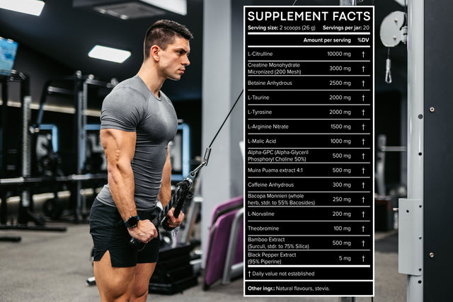 LIMITLESS makes you feel energized, cut down recovery times in between sets and lets you extend your workout sessions to maximize growth, by delaying onset of fatigue. It does that by not only relying on stimulants like caffeine anhydrous, l-tyrosine and theobromine, but also through effective doses of l-citrulline, betaine anhydrous and l-malic acid.